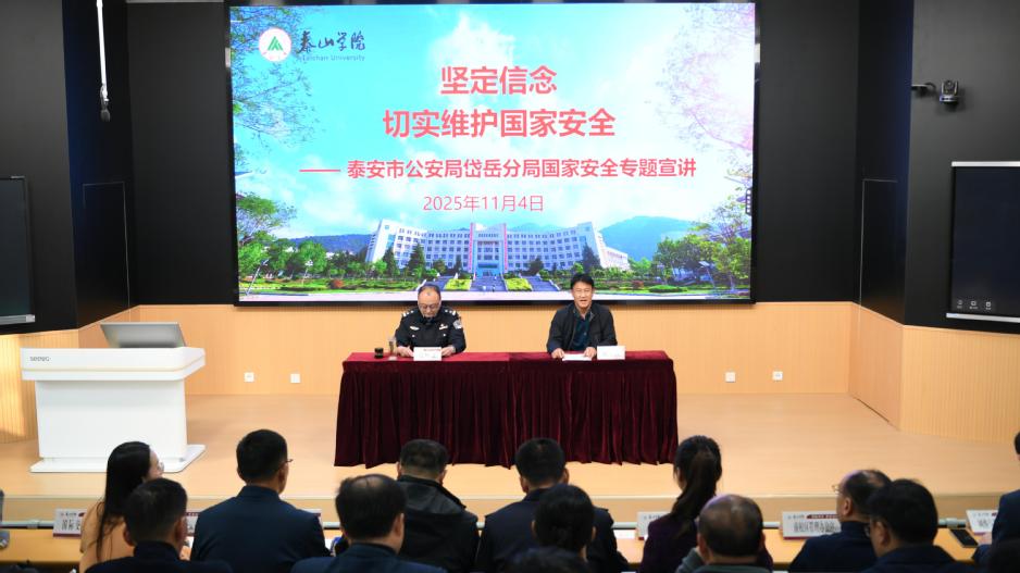 为进一步树牢总体国家安全观,增强师生维护国家安全的责任感和使命感,11月4日下午,学校联合泰安市公安局岱岳分局共同举办“坚定信念,切实维护国家安全”专题宣讲。宣讲活动由党委委员、副校长田杰昌主持。